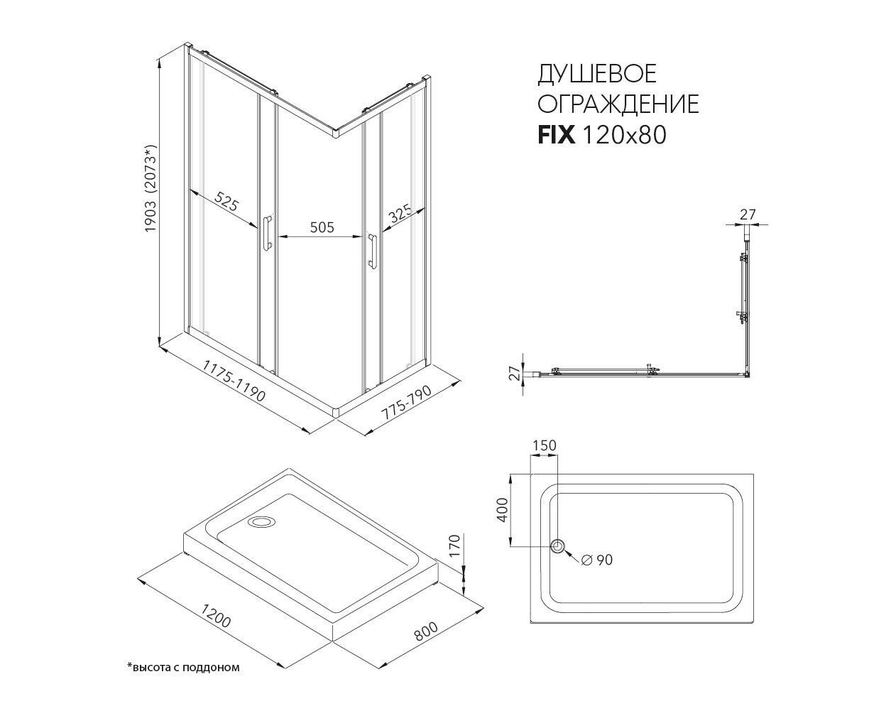 Характеристики Душевое ограждение Triton Фикс-Графит 120х80 прямоугольник