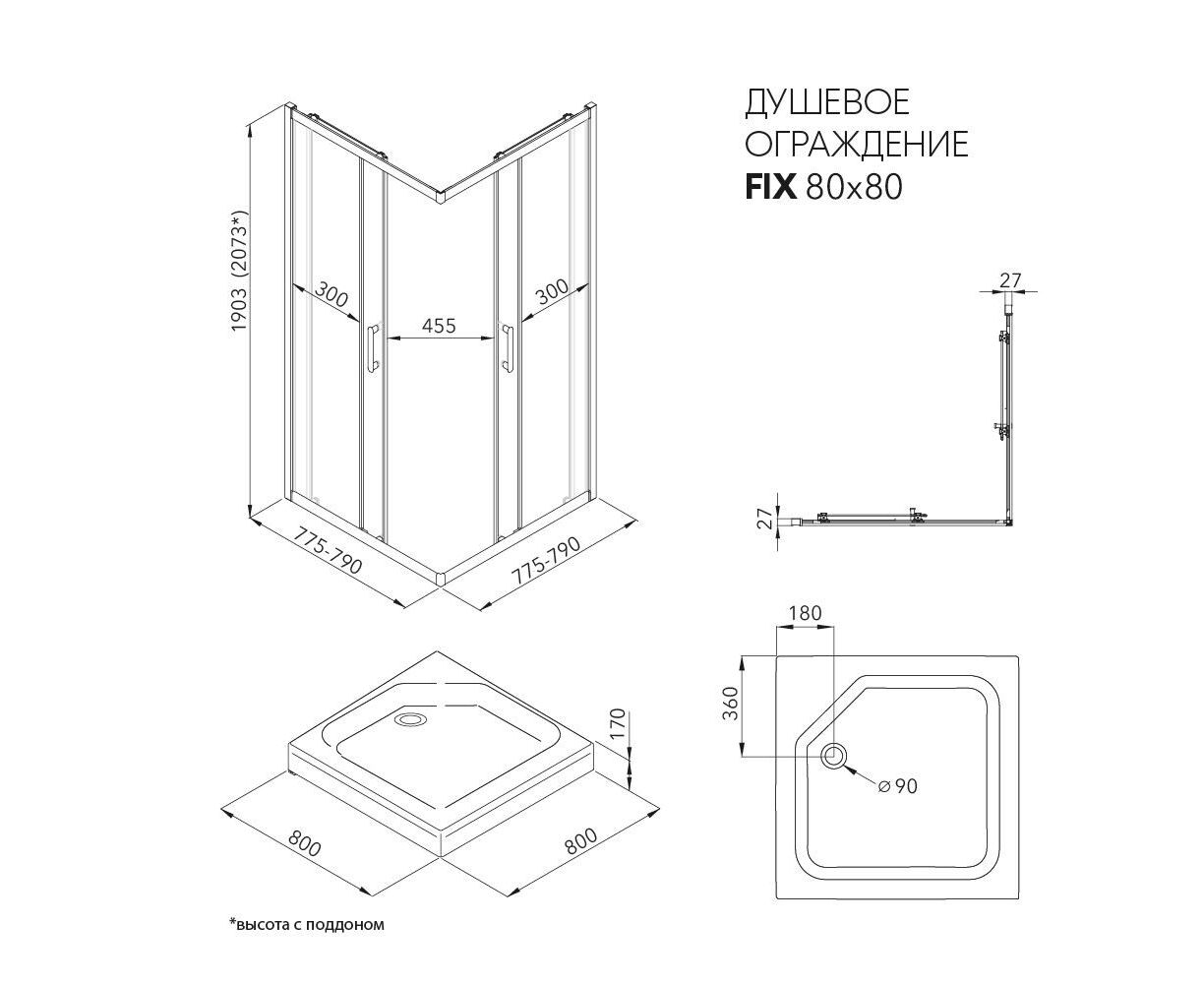 Характеристики Душевое ограждение Triton Фикс-Графит 80х80 квадрат