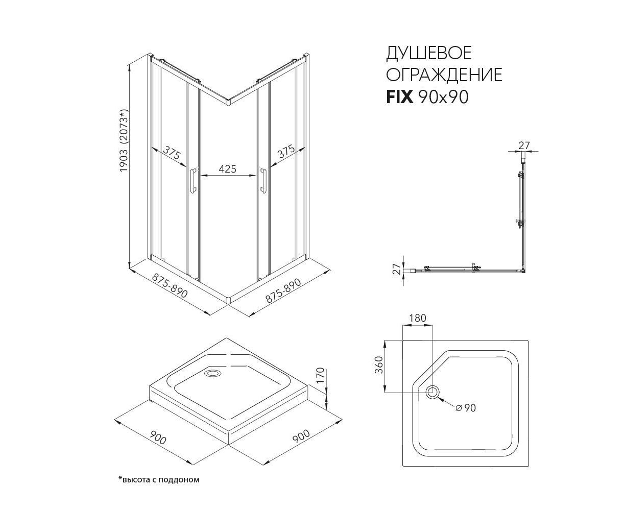 Характеристики Душевое ограждение Triton Фикс-Графит 90х90 квадрат