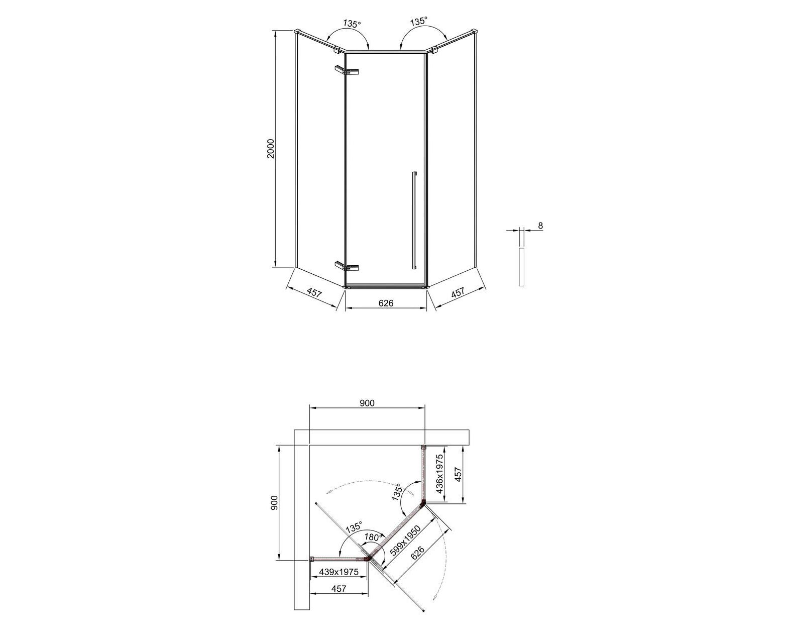 Душевой угол Timo TTSSP-90/13C-8 900х900х2000 профиль никель стекло прозрачное 8 мм