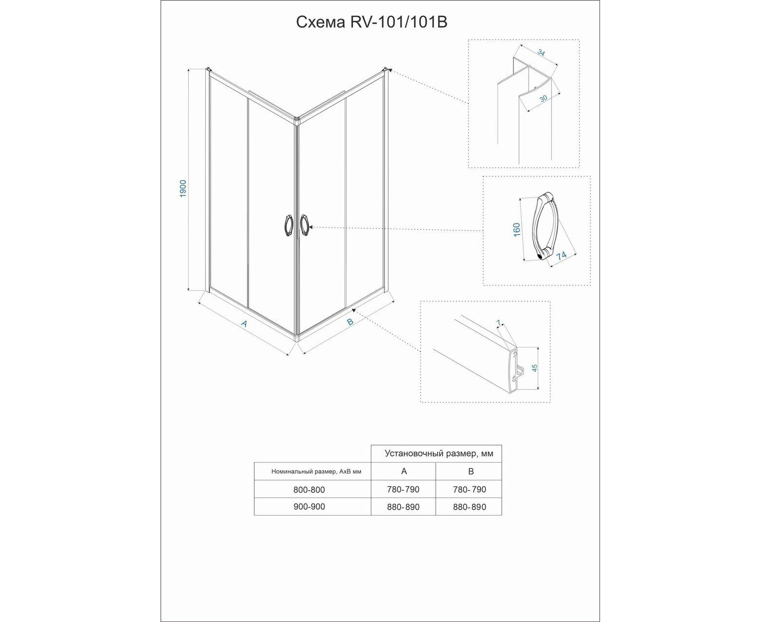 Характеристики Душевой угол Veconi Rovigo RV-101B 800x800x1900 черный стекло прозрачное