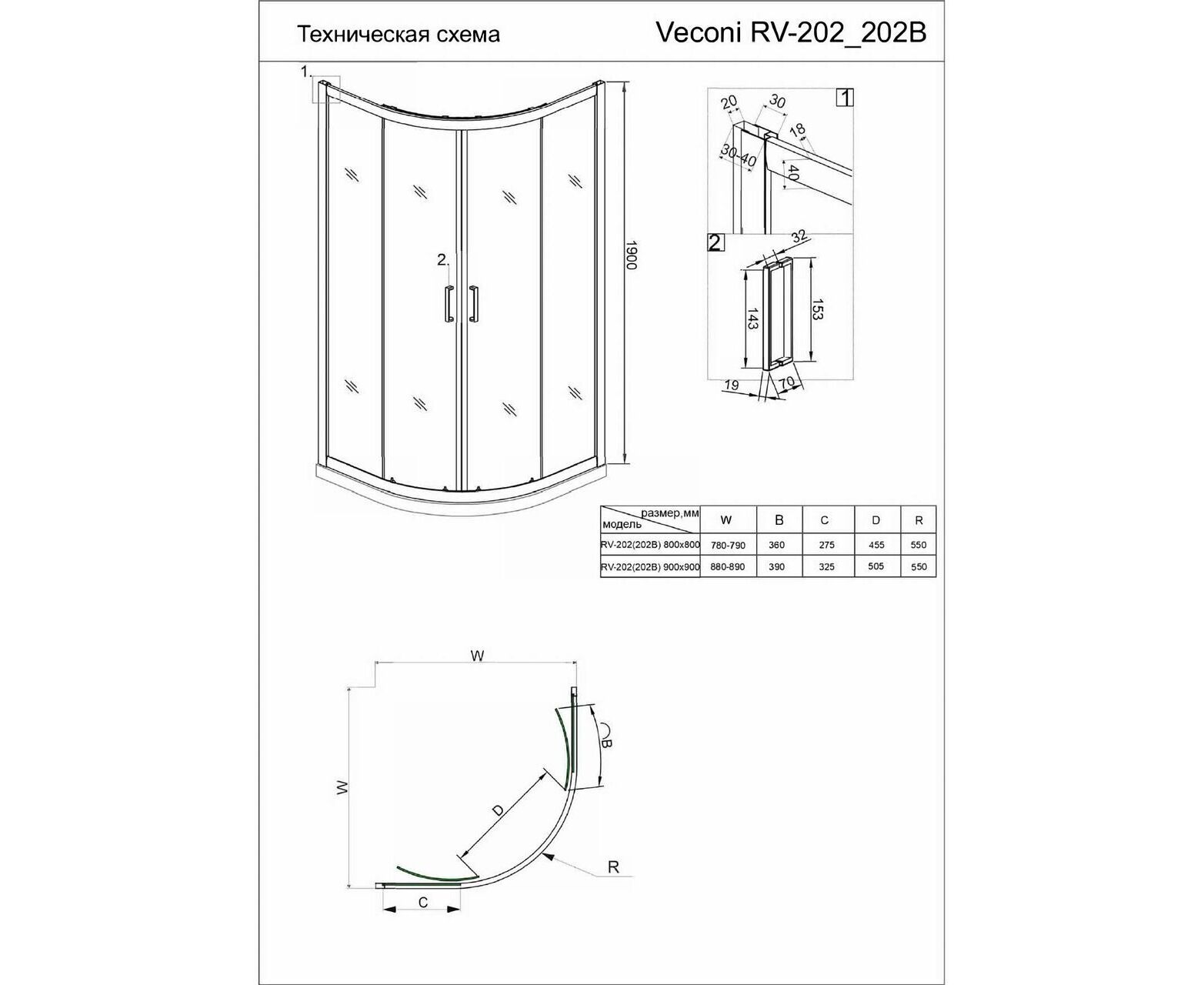 Характеристики Душевой угол Veconi Rovigo RV-202GR 800x800x1900 брашированный графит прозрачное стекло