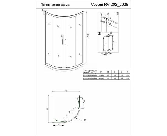 БрендVeconi Ширина, см80 Глубина, см80 Высота, см190 ФормаКвадратная ОриентацияУниверсальная Поддон в комплектеНет Количество секций двери1 СтранаИталия Гарантия2 года
