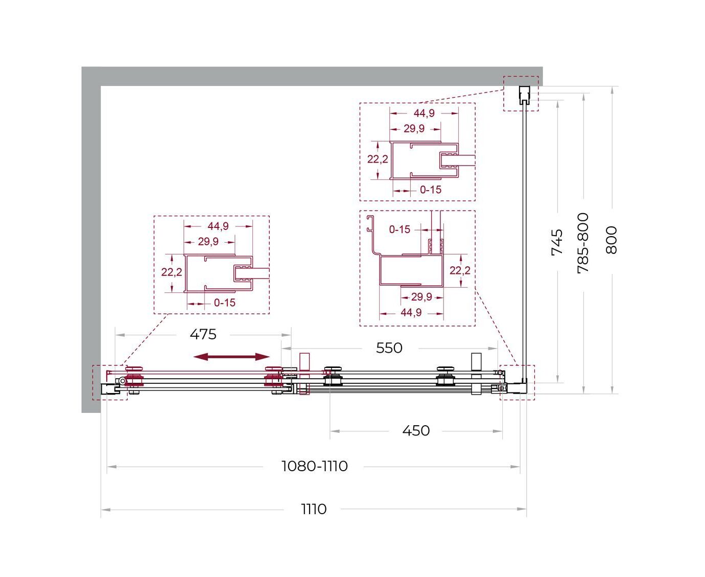 Раздвижные двери оборудованы одинарными роликами увеличенного диаметра, корпуса которых изготовлены из прочного сплава Zamak (цинко-алюминиево-магниево-медного состава) и нержавеющей стали. Такая комбинация материалов обеспечивает длительную и надежную эксплуатацию механизмов.