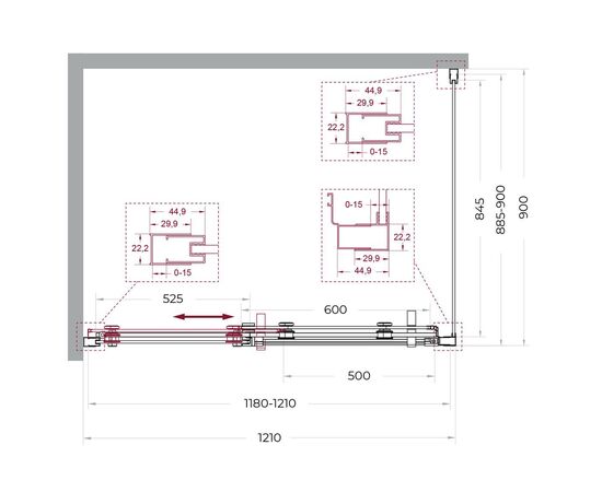 Раздвижные двери оборудованы одинарными роликами увеличенного диаметра, корпуса которых изготовлены из прочного сплава Zamak (цинко-алюминиево-магниево-медного состава) и нержавеющей стали. Такая комбинация материалов обеспечивает длительную и надежную эксплуатацию механизмов.