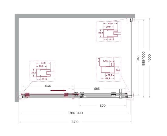 Раздвижные двери оборудованы одинарными роликами увеличенного диаметра, корпуса которых изготовлены из прочного сплава Zamak (цинко-алюминиево-магниево-медного состава) и нержавеющей стали. Такая комбинация материалов обеспечивает длительную и надежную эксплуатацию механизмов.