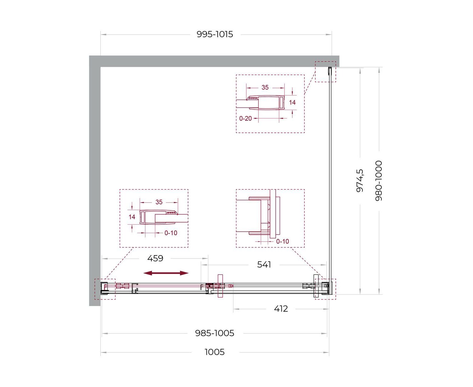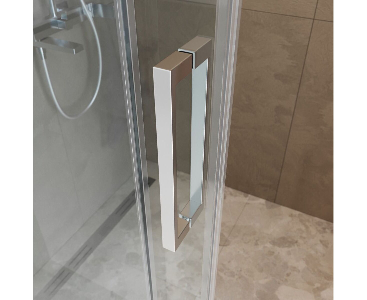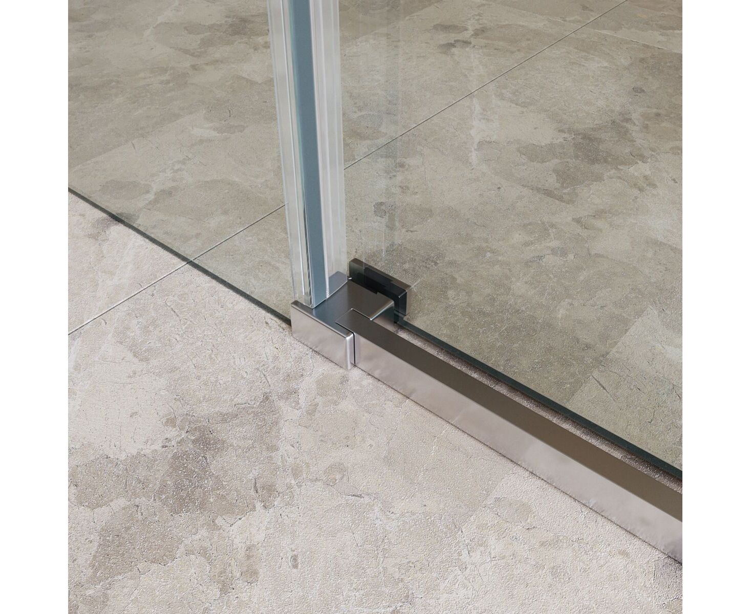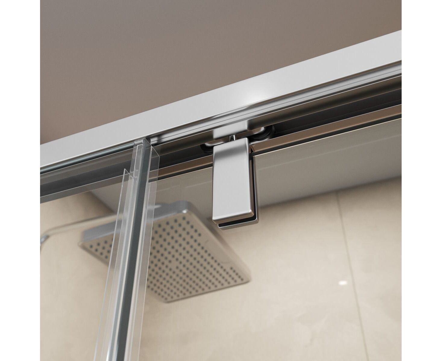 Система подвески: Двойные навесные ролики из нержавеющей стали с держателем стекла обеспечивают плавное движение створки, ее устойчивость и отсутствие перекосов.