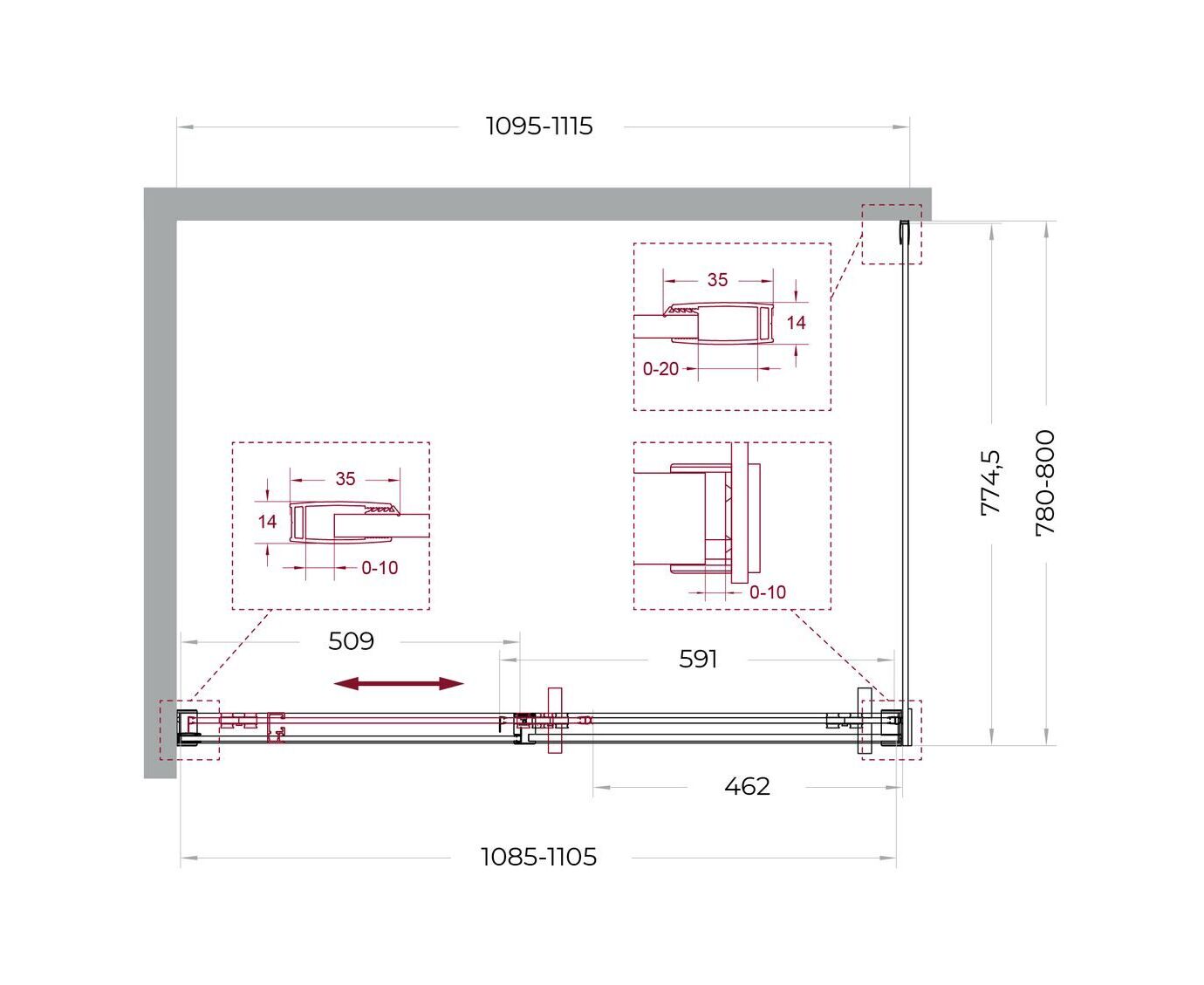 Система подвески: Двойные навесные ролики из нержавеющей стали с держателем стекла обеспечивают плавное движение створки, ее устойчивость и отсутствие перекосов.