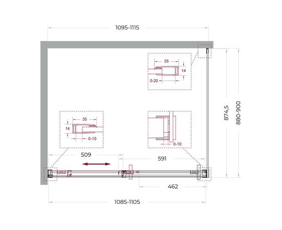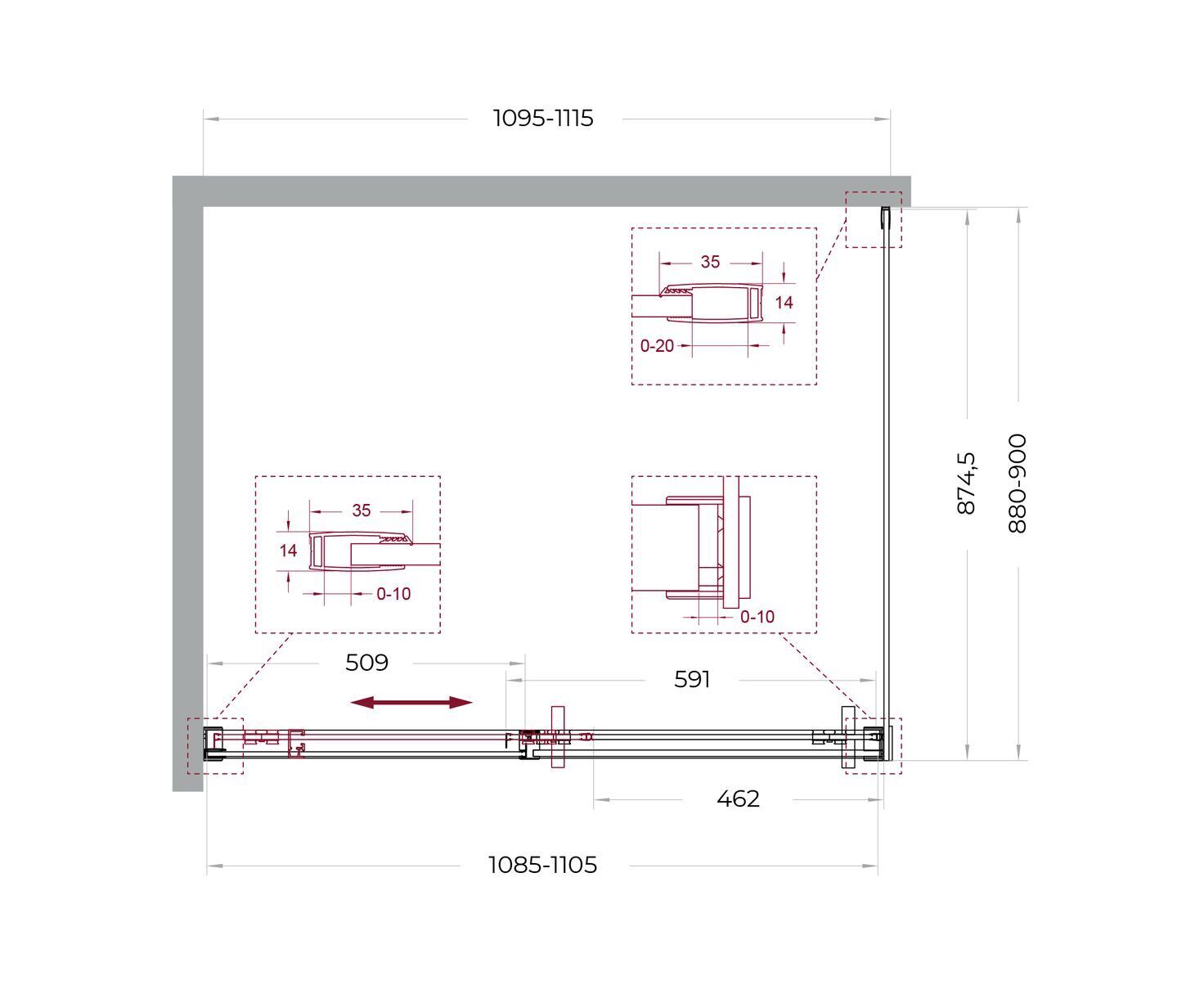 Система подвески: Двойные навесные ролики из нержавеющей стали с держателем стекла обеспечивают плавное движение створки, ее устойчивость и отсутствие перекосов.