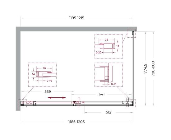 Система подвески: Двойные навесные ролики из нержавеющей стали с держателем стекла обеспечивают плавное движение створки, ее устойчивость и отсутствие перекосов.
