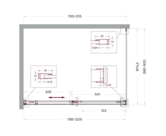 Система подвески: Двойные навесные ролики из нержавеющей стали с держателем стекла обеспечивают плавное движение створки, ее устойчивость и отсутствие перекосов.