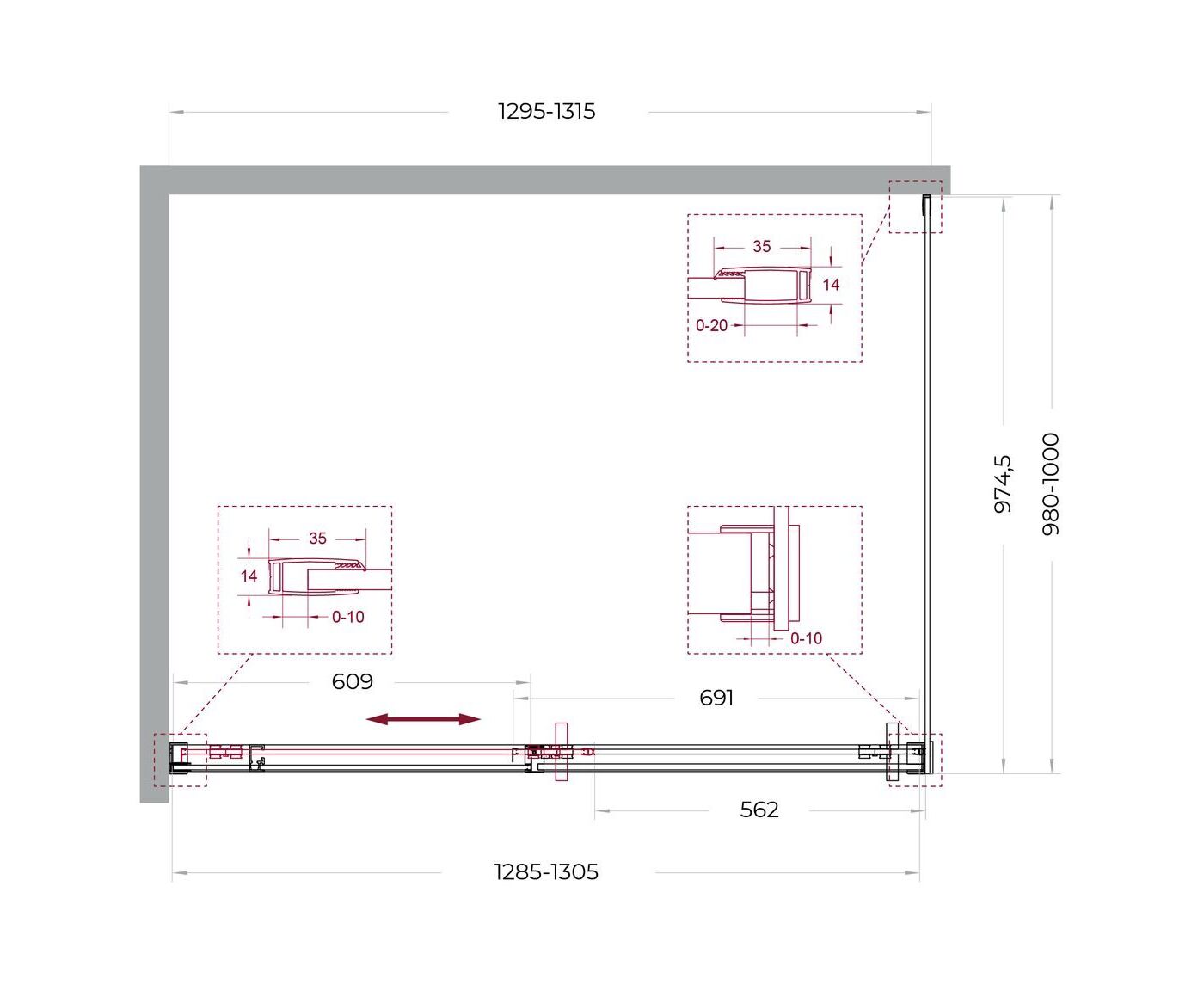 Система подвески: Двойные навесные ролики из нержавеющей стали с держателем стекла обеспечивают плавное движение створки, ее устойчивость и отсутствие перекосов.
