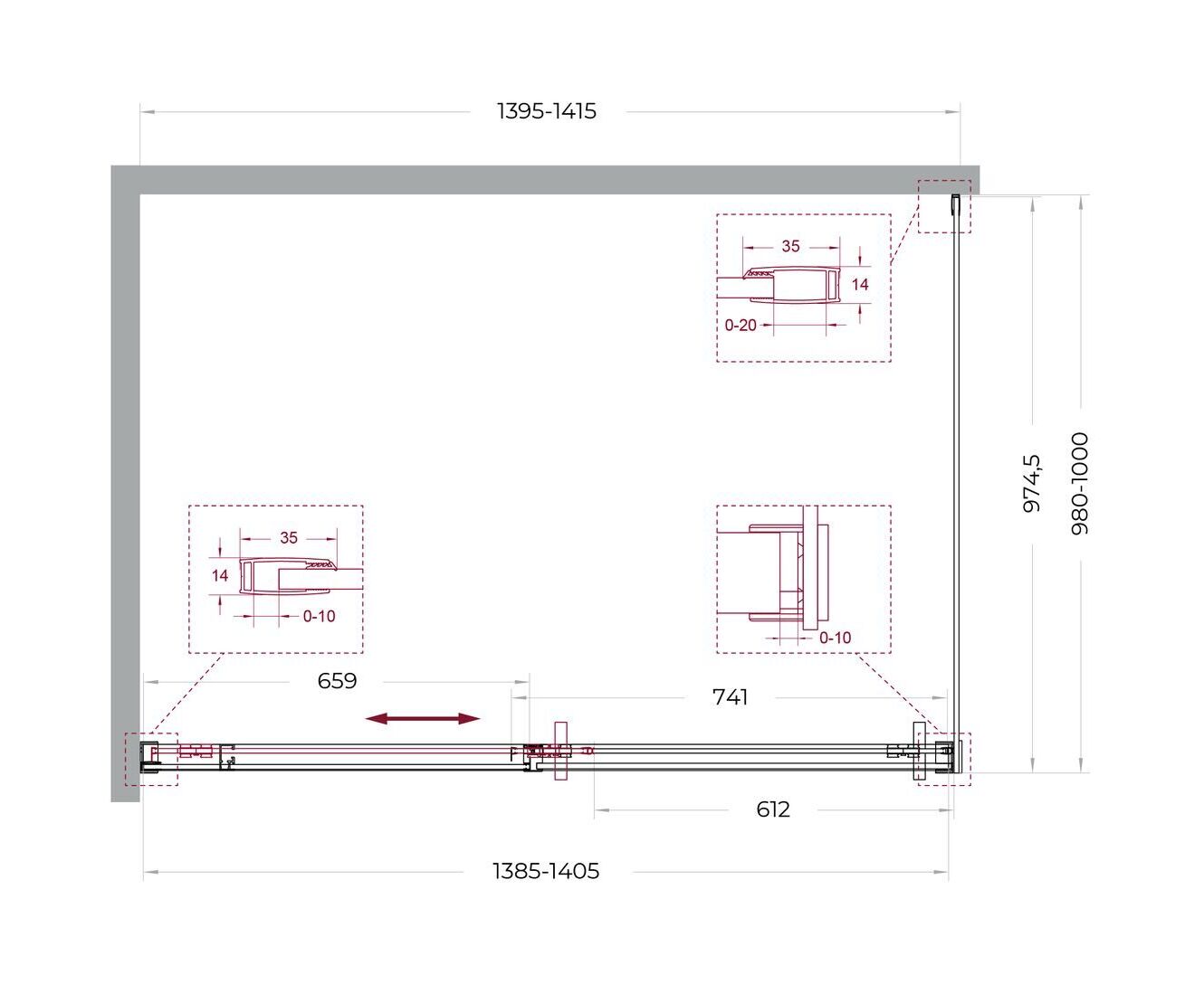 Система подвески: Двойные навесные ролики из нержавеющей стали с держателем стекла обеспечивают плавное движение створки, ее устойчивость и отсутствие перекосов.