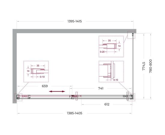 Система подвески: Двойные навесные ролики из нержавеющей стали с держателем стекла обеспечивают плавное движение створки, ее устойчивость и отсутствие перекосов.