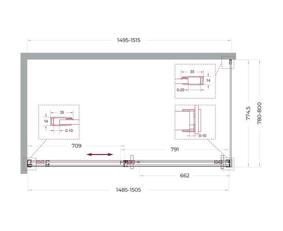 Система подвески: Двойные навесные ролики из нержавеющей стали с держателем стекла обеспечивают плавное движение створки, ее устойчивость и отсутствие перекосов.