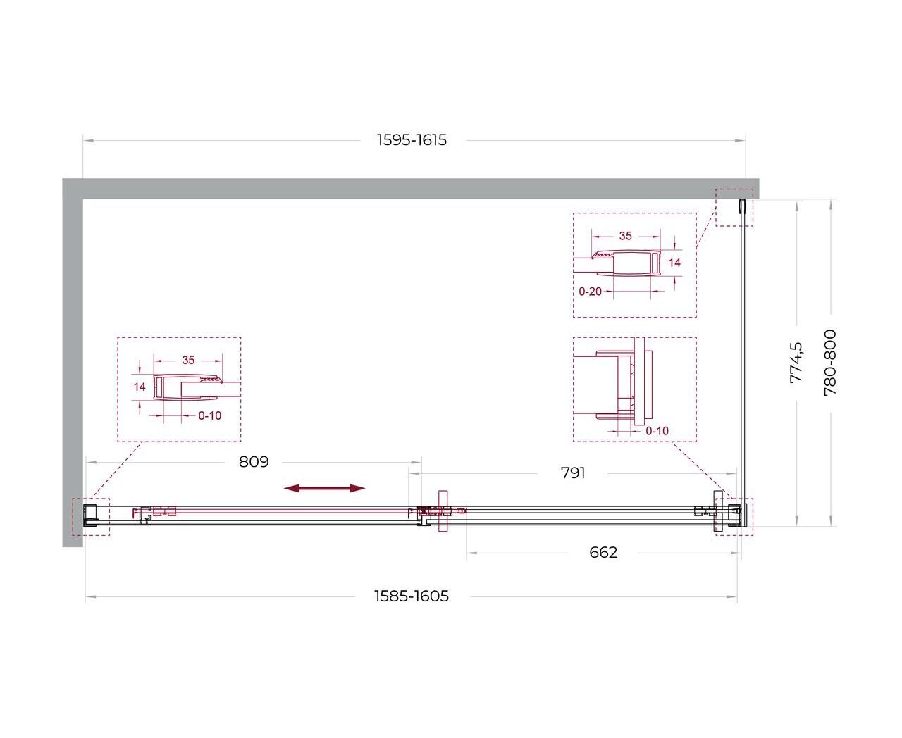 Система подвески: Двойные навесные ролики из нержавеющей стали с держателем стекла обеспечивают плавное движение створки, ее устойчивость и отсутствие перекосов.