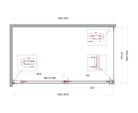 Система подвески: Двойные навесные ролики из нержавеющей стали с держателем стекла обеспечивают плавное движение створки, ее устойчивость и отсутствие перекосов.