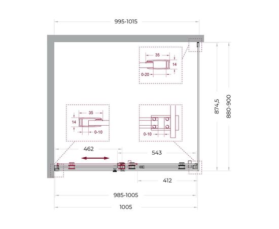 Коллекция сохраняет все преимущества минималистичного дизайна: минимум деталей, узкие профили и прозрачное стекло, которое не перегружает пространство, подчёркивая ощущение простора в ванной. Особая фишка - ролики увеличенного диаметра, обеспечивающие сверх плавное и бесшумное скольжение стеклянной панели без малейших усилий. Эти крупные элементы визуально доминируют, добавляя ограждению нотку надёжности и индустриальной эстетики в минималистичном стиле. Благодаря им ощущается лёгкость движения двери, усиливающая общее впечатление роскоши и стабильности, будто конструкция парит.