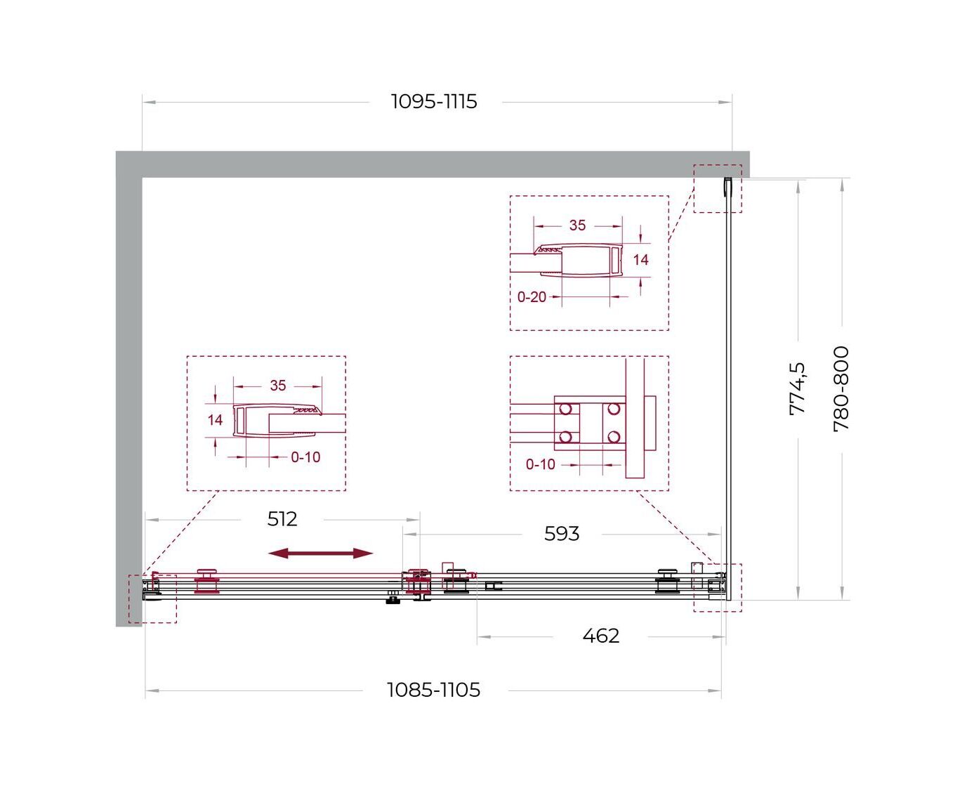 Надёжная фурнитура: раздвижная конструкция на роликах увеличенного диаметра из нержавеющей стали.