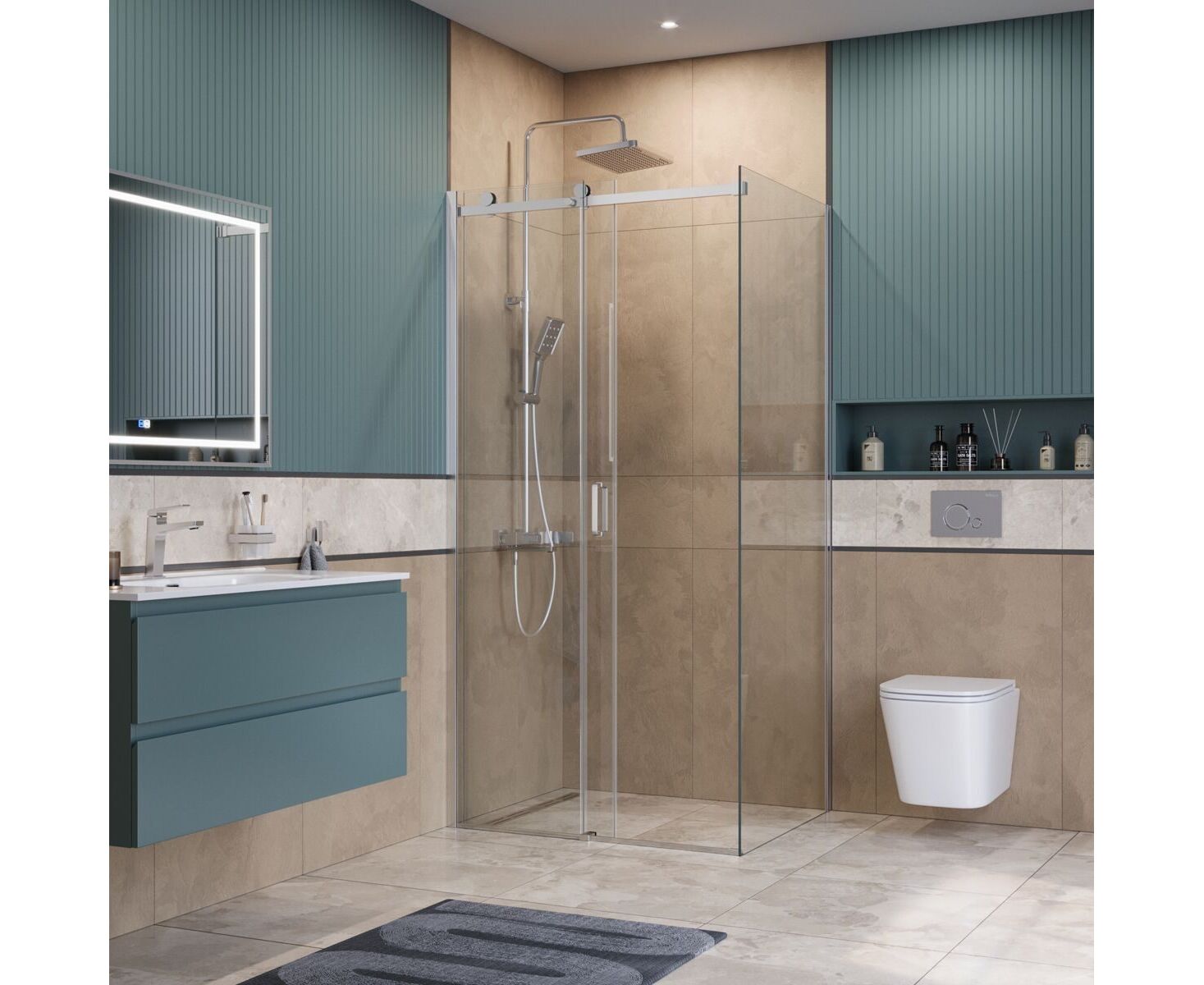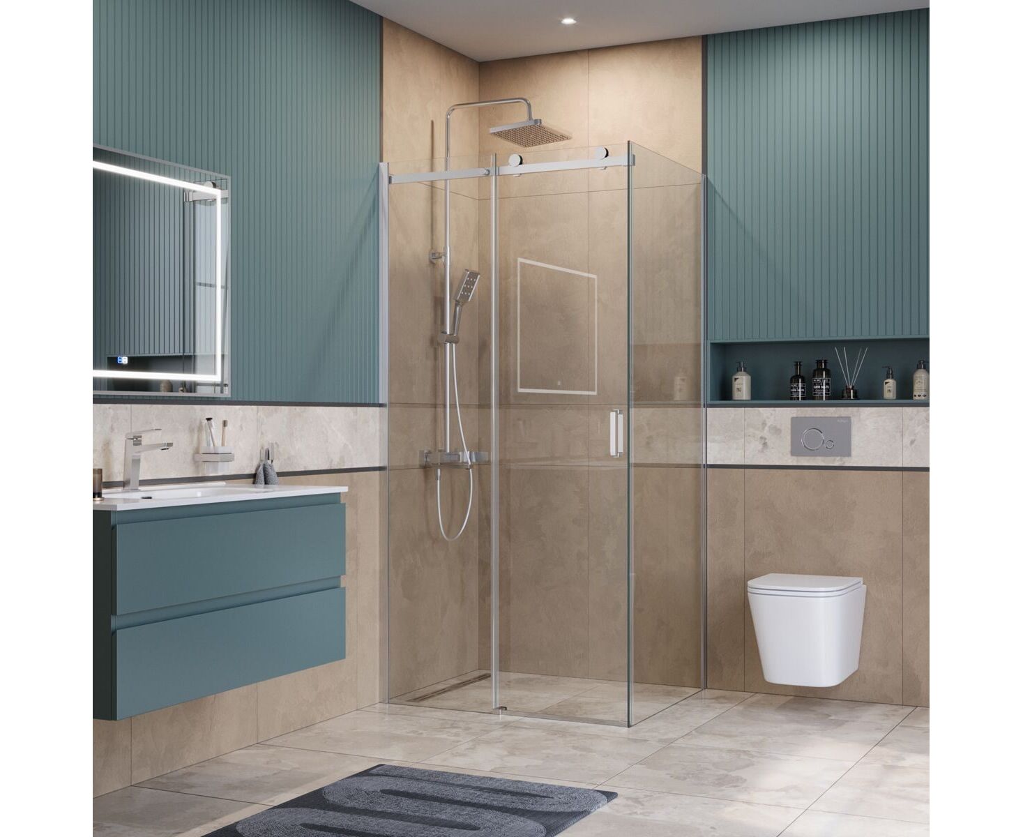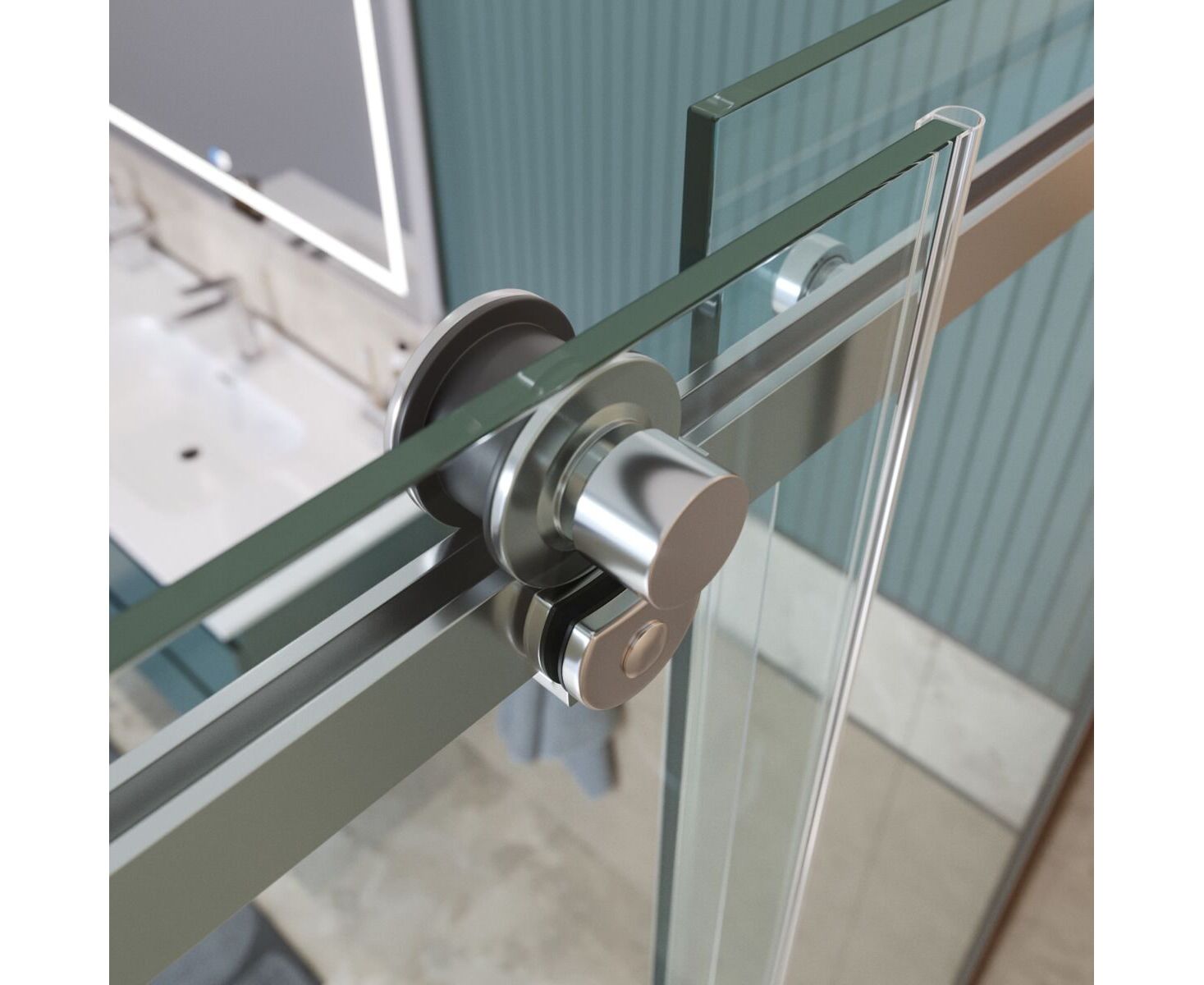 Коллекция сохраняет все преимущества минималистичного дизайна: минимум деталей, узкие профили и прозрачное стекло, которое не перегружает пространство, подчёркивая ощущение простора в ванной. Особая фишка - ролики увеличенного диаметра, обеспечивающие сверх плавное и бесшумное скольжение стеклянной панели без малейших усилий. Эти крупные элементы визуально доминируют, добавляя ограждению нотку надёжности и индустриальной эстетики в минималистичном стиле. Благодаря им ощущается лёгкость движения двери, усиливающая общее впечатление роскоши и стабильности, будто конструкция парит.