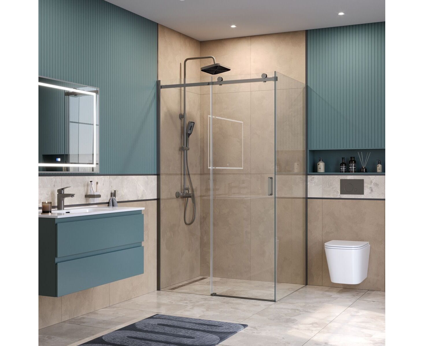 Коллекция сохраняет все преимущества минималистичного дизайна: минимум деталей, узкие профили и прозрачное стекло, которое не перегружает пространство, подчёркивая ощущение простора в ванной. Особая фишка - ролики увеличенного диаметра, обеспечивающие сверх плавное и бесшумное скольжение стеклянной панели без малейших усилий. Эти крупные элементы визуально доминируют, добавляя ограждению нотку надёжности и индустриальной эстетики в минималистичном стиле. Благодаря им ощущается лёгкость движения двери, усиливающая общее впечатление роскоши и стабильности, будто конструкция парит.