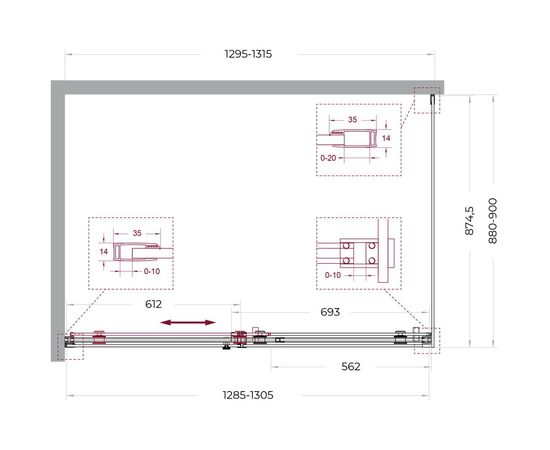 Коллекция предлагает три конфигурации, идеально подходящие для различных планировок ванных комнат: квадратную (A-1), прямоугольную (AH-1) и дверь в нишу (BF-1). Все они имеют высоту 2000 мм и доступны в наиболее востребованных размерах.