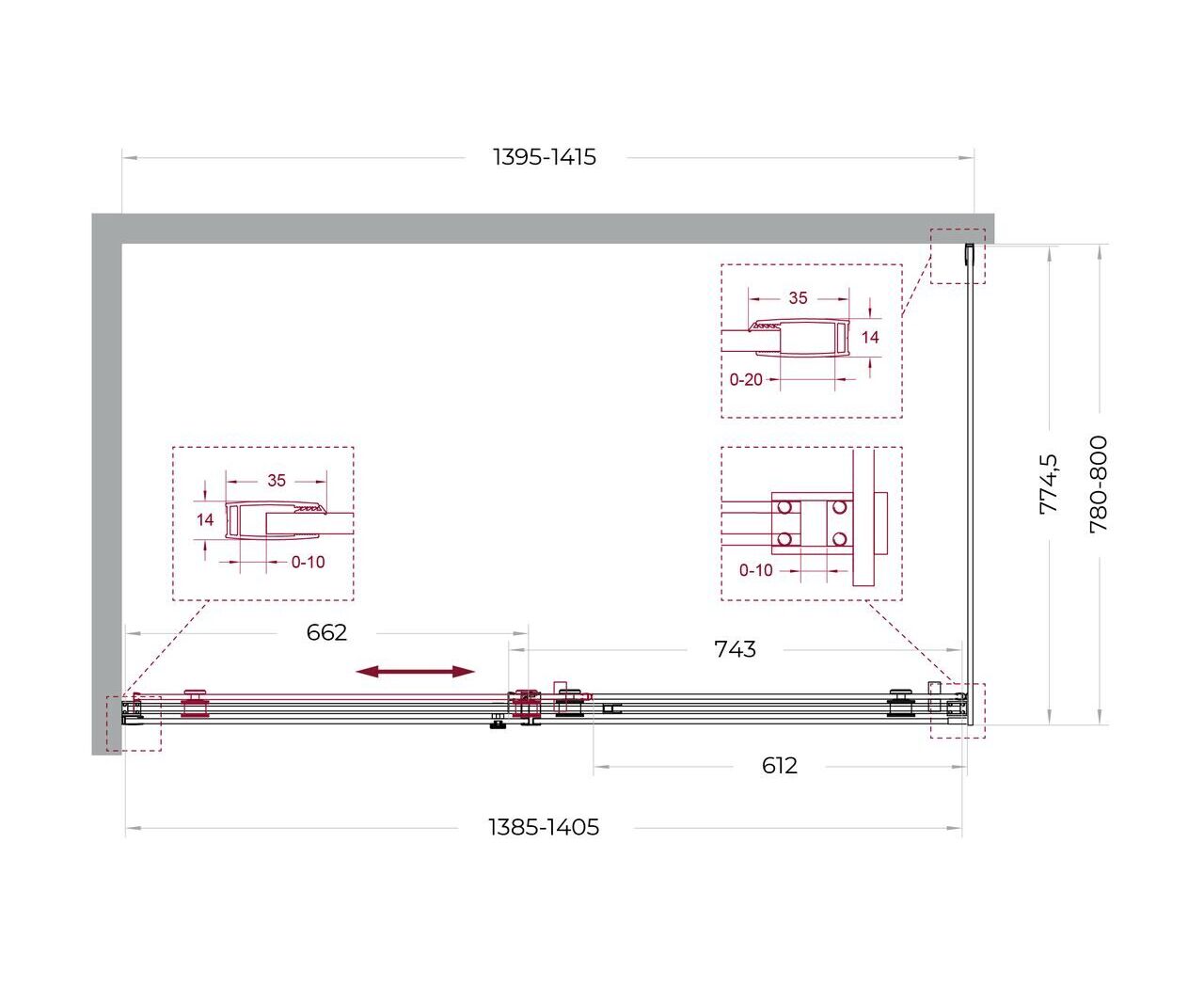 Душевой уголок BelBagno SOFT_CLOSE-2-AH-1-140/80-C-GM