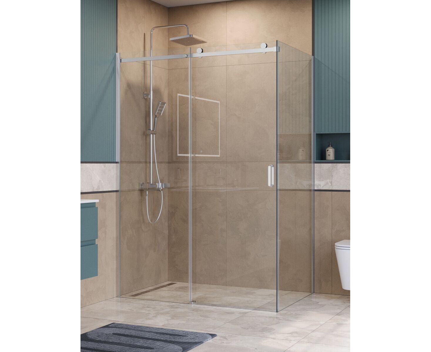 Коллекция сохраняет все преимущества минималистичного дизайна: минимум деталей, узкие профили и прозрачное стекло, которое не перегружает пространство, подчёркивая ощущение простора в ванной. Особая фишка - ролики увеличенного диаметра, обеспечивающие сверх плавное и бесшумное скольжение стеклянной панели без малейших усилий. Эти крупные элементы визуально доминируют, добавляя ограждению нотку надёжности и индустриальной эстетики в минималистичном стиле. Благодаря им ощущается лёгкость движения двери, усиливающая общее впечатление роскоши и стабильности, будто конструкция парит.