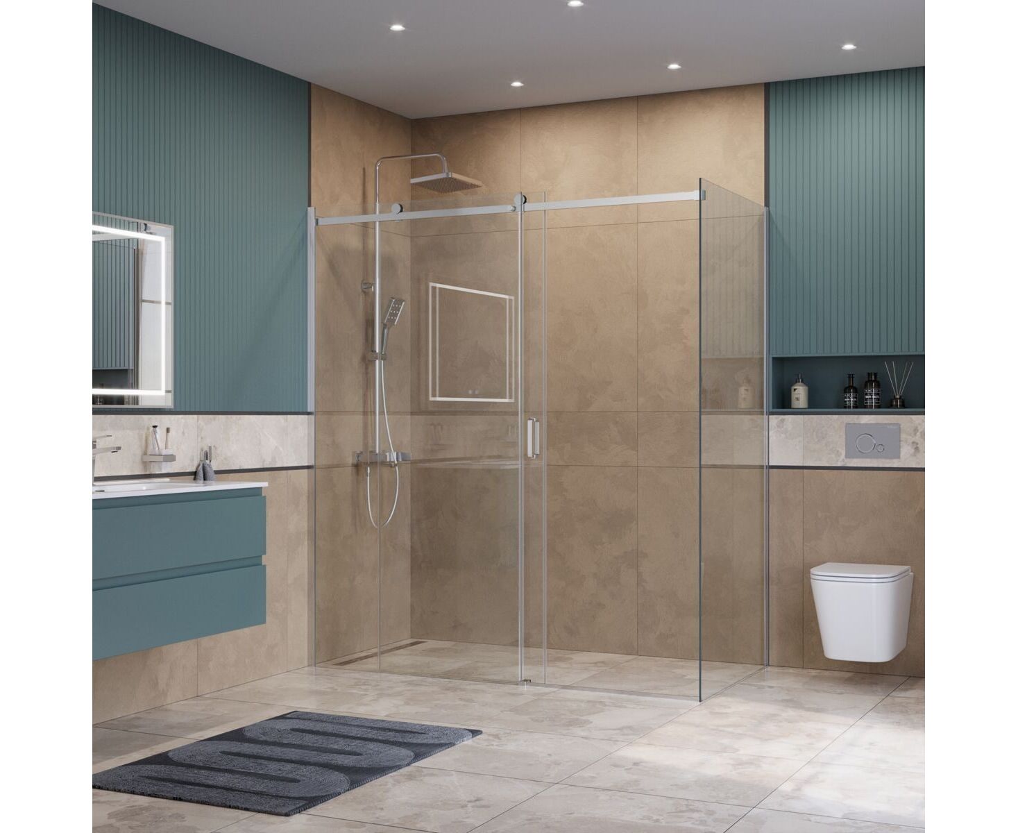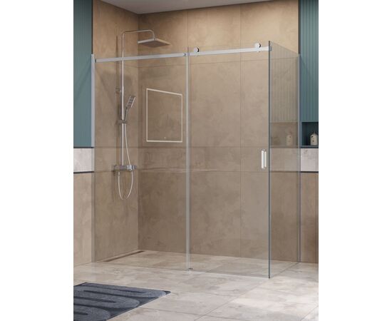 Коллекция сохраняет все преимущества минималистичного дизайна: минимум деталей, узкие профили и прозрачное стекло, которое не перегружает пространство, подчёркивая ощущение простора в ванной. Особая фишка - ролики увеличенного диаметра, обеспечивающие сверх плавное и бесшумное скольжение стеклянной панели без малейших усилий. Эти крупные элементы визуально доминируют, добавляя ограждению нотку надёжности и индустриальной эстетики в минималистичном стиле. Благодаря им ощущается лёгкость движения двери, усиливающая общее впечатление роскоши и стабильности, будто конструкция парит.