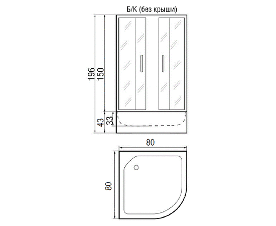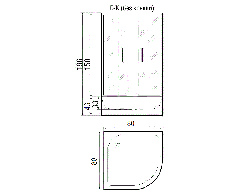 БрендRiver Ширина, см80 Глубина, см80 Высота, см196 ФормаЧетверть круга ОриентацияУниверсальная Поддон в комплектеДа Вид поддонаВысокий Количество секций двери2