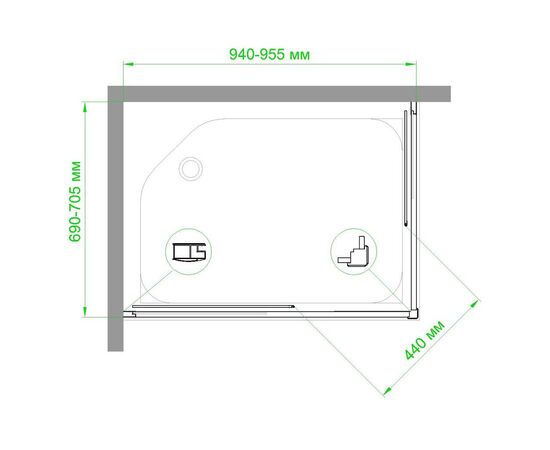 Материал полотна двери: стекло. Монтаж: пристенный в угол, напольный. Вход: спереди. Регулируемая ширина: да.