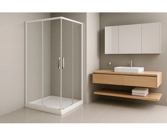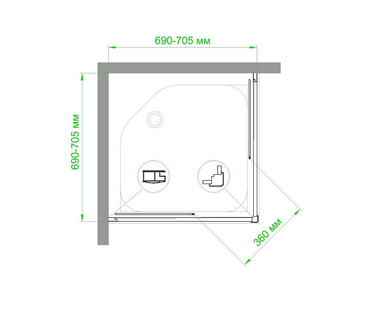 Материал полотна двери: стекло. Монтаж: пристенный в угол, напольный. Вход: спереди. Регулируемая ширина: да.