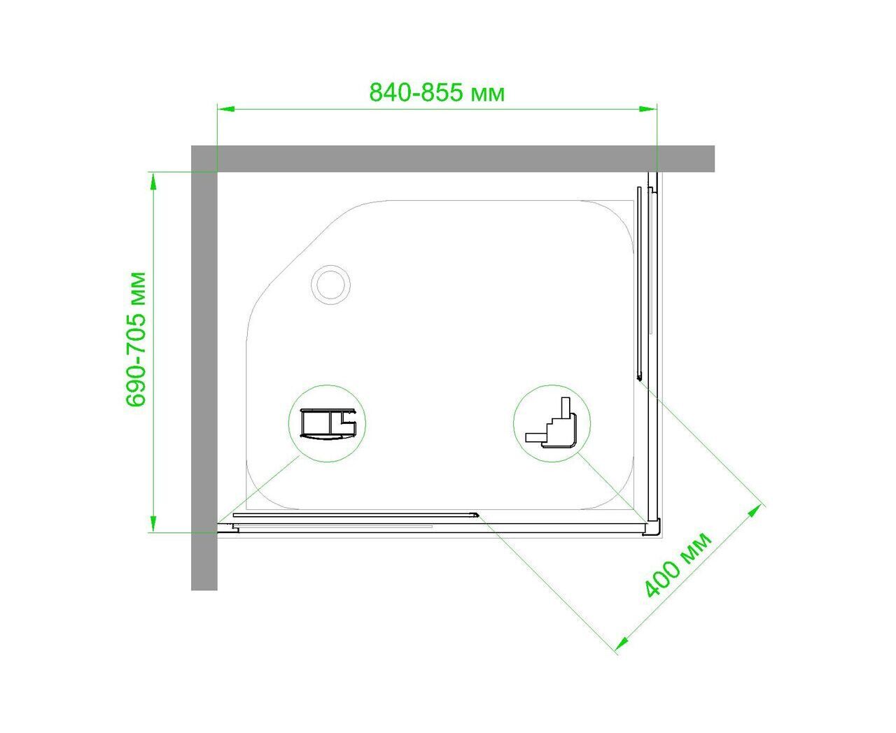 Материал полотна двери: стекло. Монтаж: пристенный в угол, напольный. Вход: спереди. Регулируемая ширина: да.