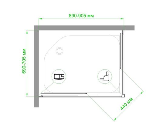 Материал полотна двери: стекло. Монтаж: пристенный в угол, напольный. Вход: спереди. Регулируемая ширина: да.