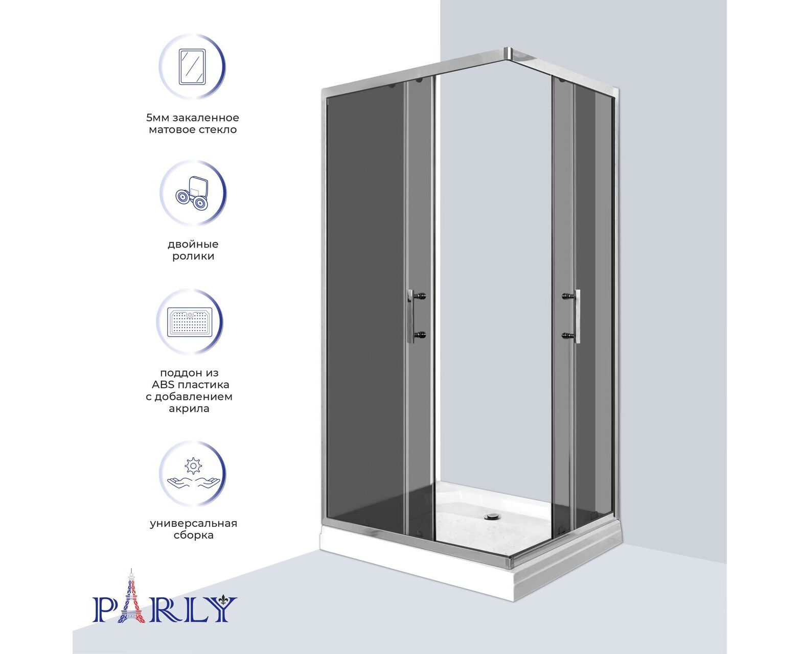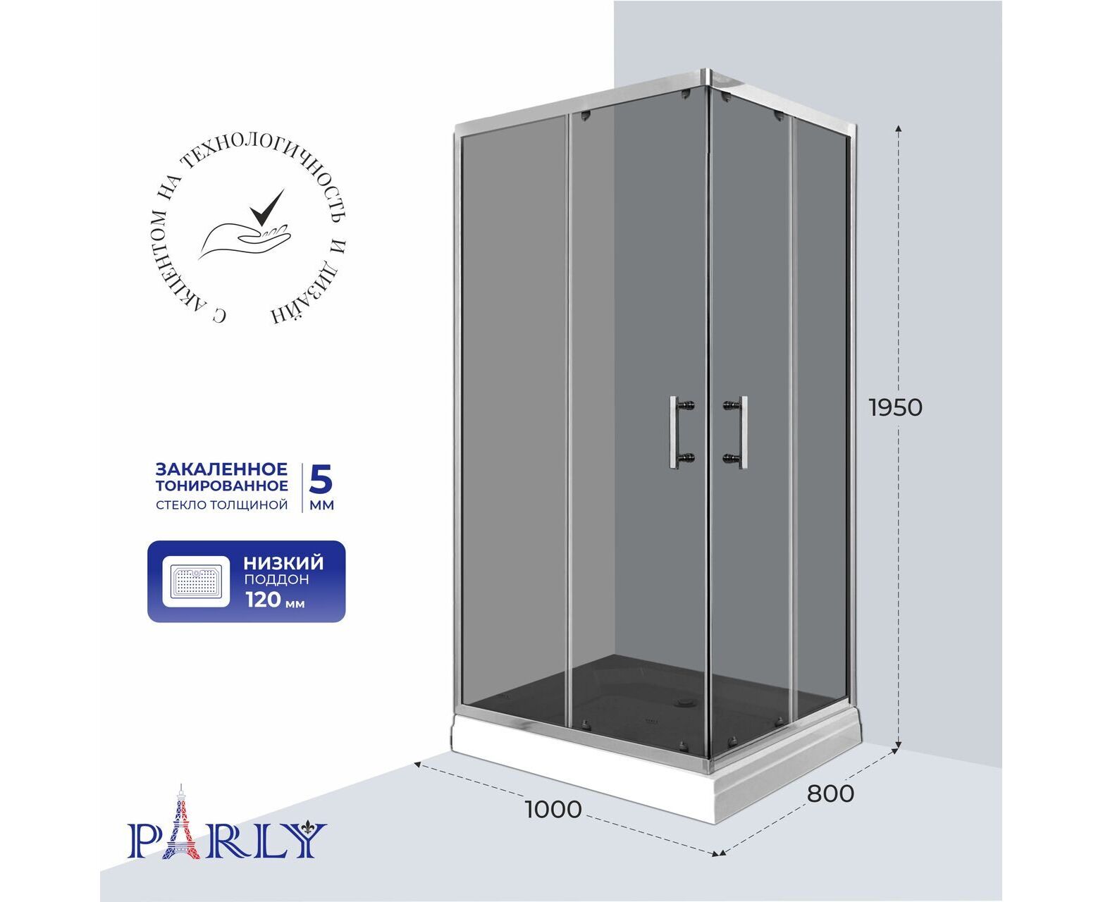БрендParly Ширина, см100 Глубина, см80 Высота, см195 ФормаПрямоугольная ОриентацияУниверсальная Поддон в комплектеДа Вид поддонаНизкий Количество секций двери2 СтранаФранция Гарантия2 года