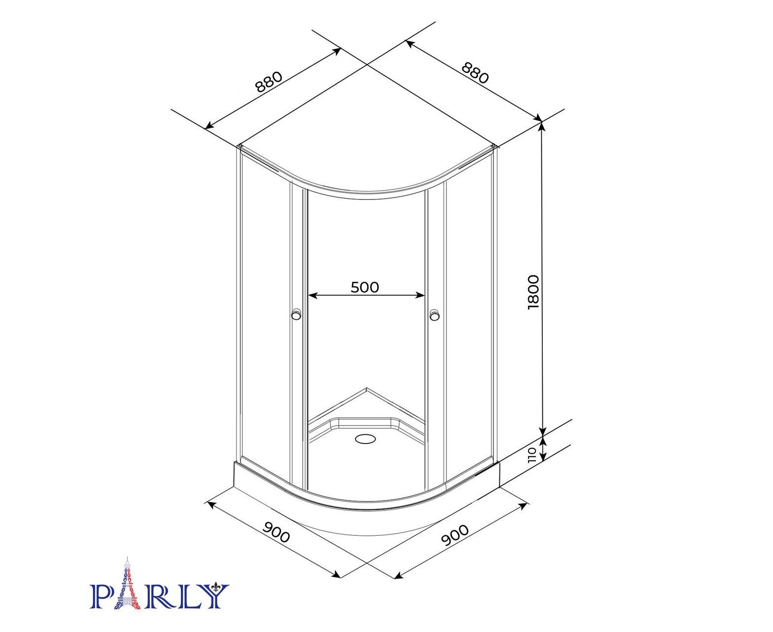 Характеристики Душевой уголок с поддоном PARLY Z9111 90х90х193