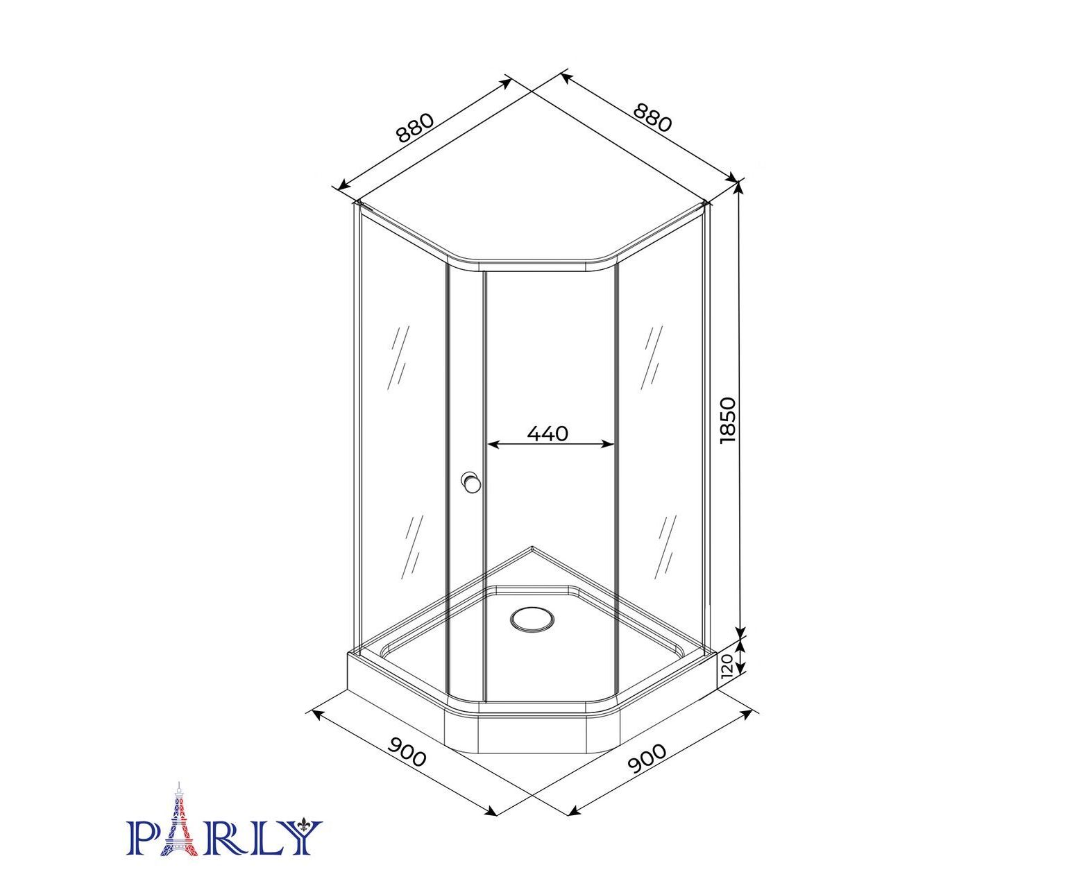 Характеристики Душевой уголок с поддоном PARLY ZEP91 90х90х197
