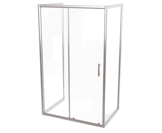 Форма: прямоугольник. Количество секций двери: 1. Конструкция дверей: раздвижные. Верхние ролики: двойные. Нижние ролики: двойные с кнопкой. Ширина входа, см: . Цвет профиля: хром. Материал профиля: алюминий. Материал стенок и дверей: закаленное стекло. Толщина стекла, мм: 6. Декор стекол: прозрачное. Тип монтажа: на пол или поддон.