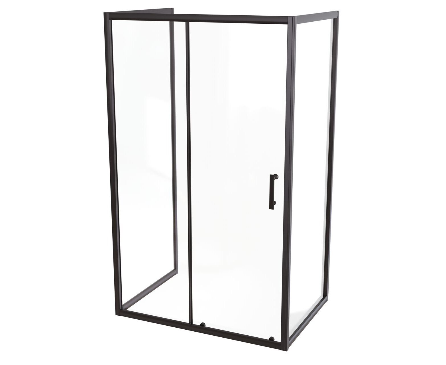 Форма: прямоугольник. Количество секций двери: 1. Конструкция дверей: раздвижные. Верхние ролики: двойные. Нижние ролики: двойные с кнопкой. Ширина входа, см: . Цвет профиля: матовый черный. Материал профиля: алюминий. Материал стенок и дверей: закаленное стекло. Толщина стекла, мм: 6. Декор стекол: прозрачное. Тип монтажа: на пол или поддон.