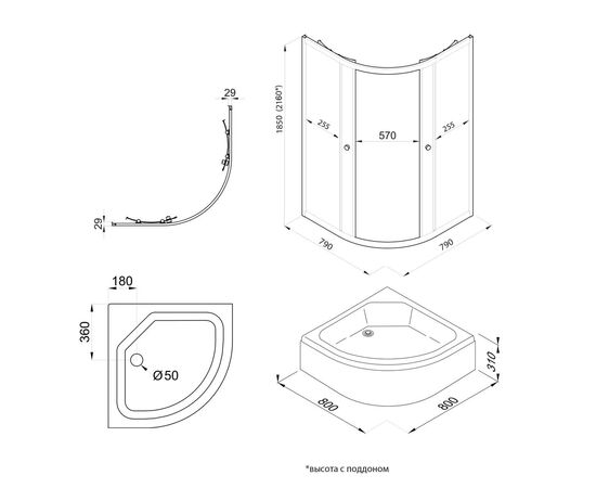 Характеристики Душевой уголок Triton Альфа-хром 80х80 В полукруг с поддоном