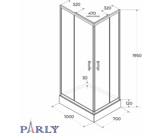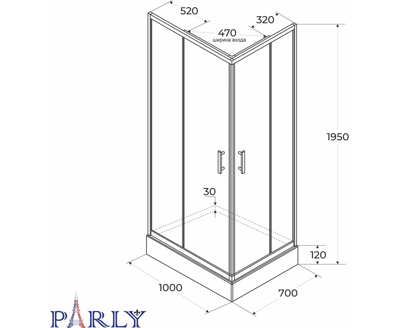 Характеристики Уголок душевой PARLY QZ71S N низкий поддон