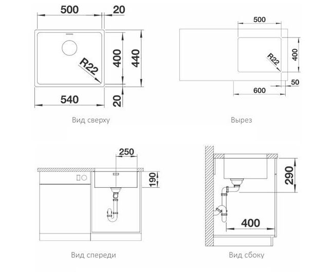 Толщина стенок, мм: 0,8. Установка: под столешницу. Клапан-автомат: нет. Отверстия под смеситель: без отверстий.