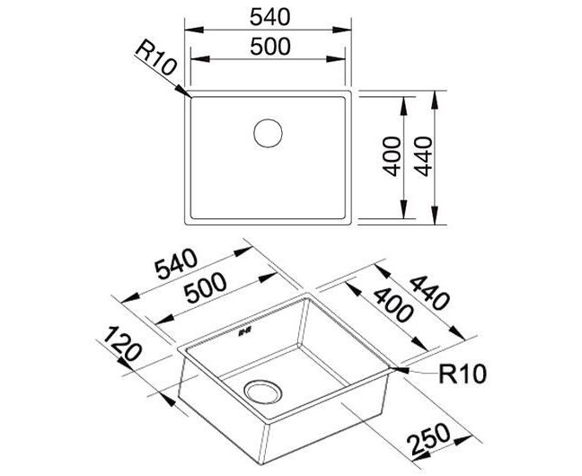 Толщина стенок, мм: 1,2. Установка: под столешницу. Клапан-автомат: нет. Отверстия под смеситель: без отверстий.