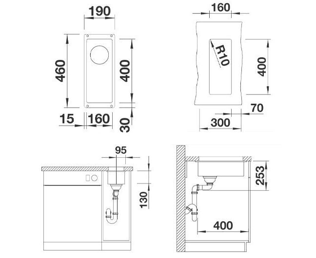 Толщина стенок, мм: 8. Установка: под столешницу. Клапан-автомат: нет. Отверстия под смеситель: без отверстий.