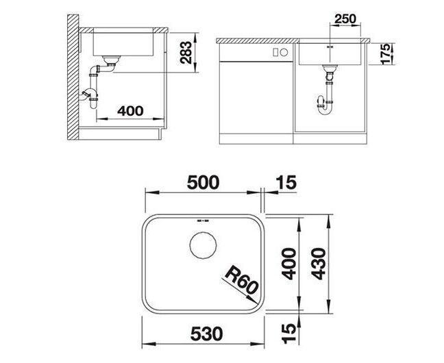 Характеристики Кухонная мойка Blanco Supra 500-U 518205 нержавеющая сталь