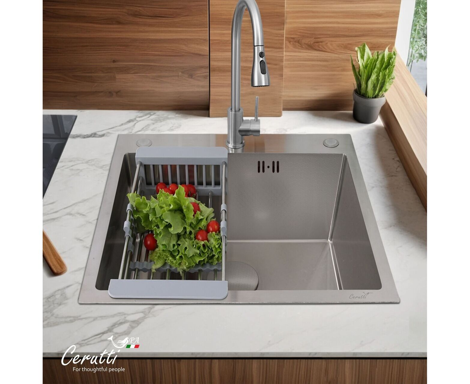 • Нержавеющая сталь с рифленым PVD покрытием: Высококачественная нержавеющая сталь обеспечивает долговечность и устойчивость к коррозии. Рифленое PVD покрытие не только придает мойке уникальную текстуру и дополнительную защиту от царапин, но и делает ее более устойчивой к истиранию и сохраняет первозданный вид надолго.