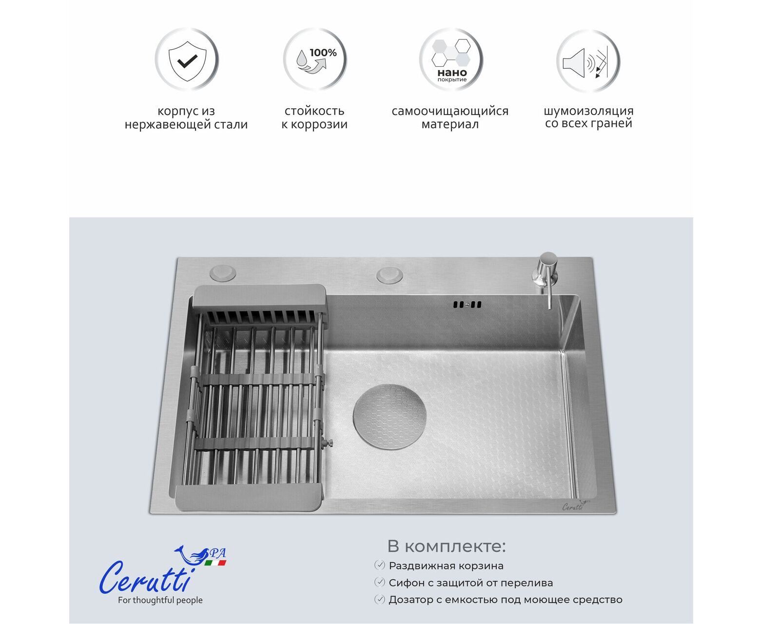 Кухонная мойка Ceruttispa GLORIA60 nano embos (матовый хром) - это не просто элемент кухни, это инвестиция в ваш комфорт, стиль и долговечность.