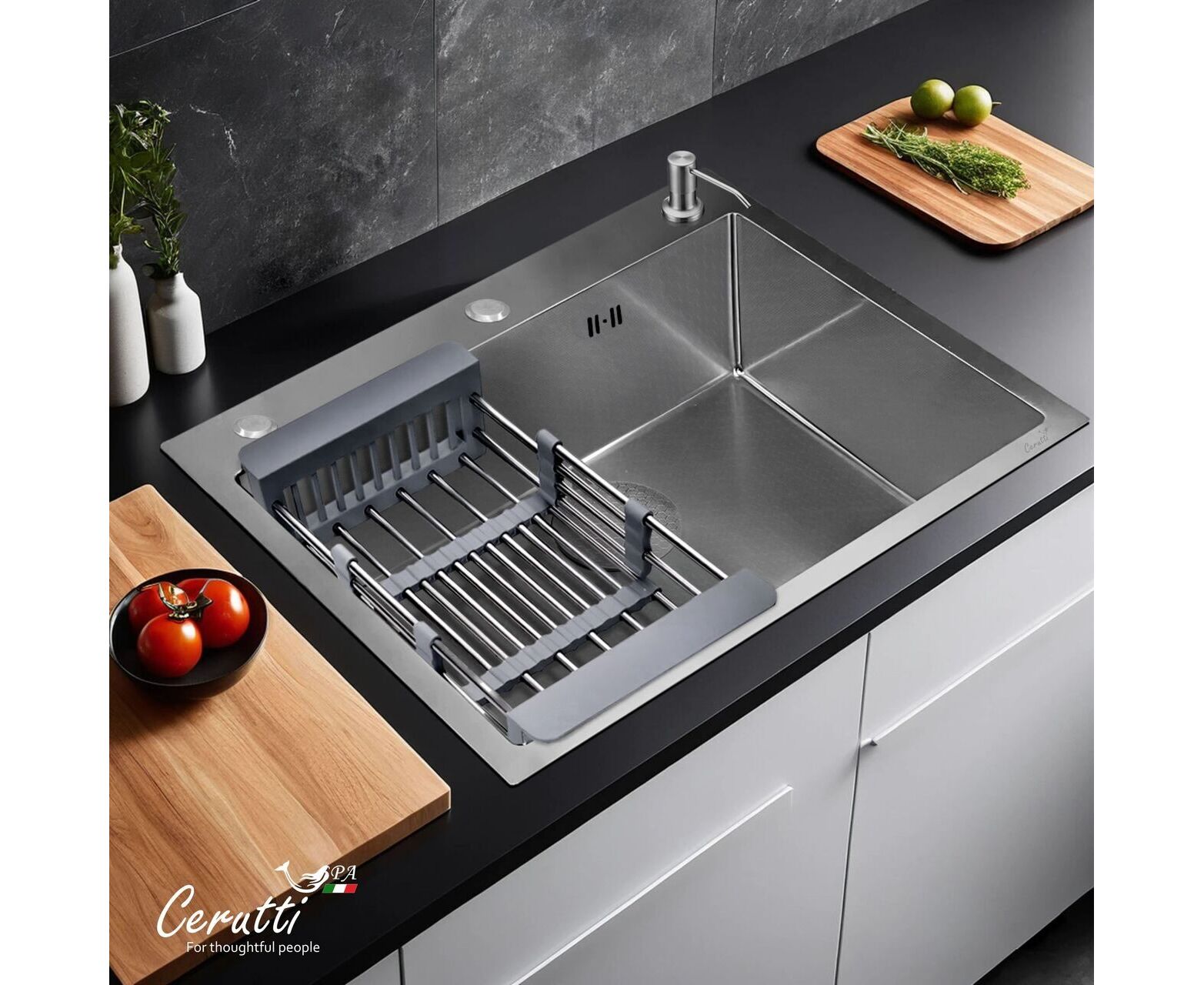 • Раздвижная сушилка для посуды: Инновационная раздвижная сушилка (решетка/подставка/коландер) – это настоящее спасение для вашей кухни. Она легко трансформируется, позволяя сушить посуду, овощи или фрукты прямо над мойкой, экономя пространство и поддерживая порядок.