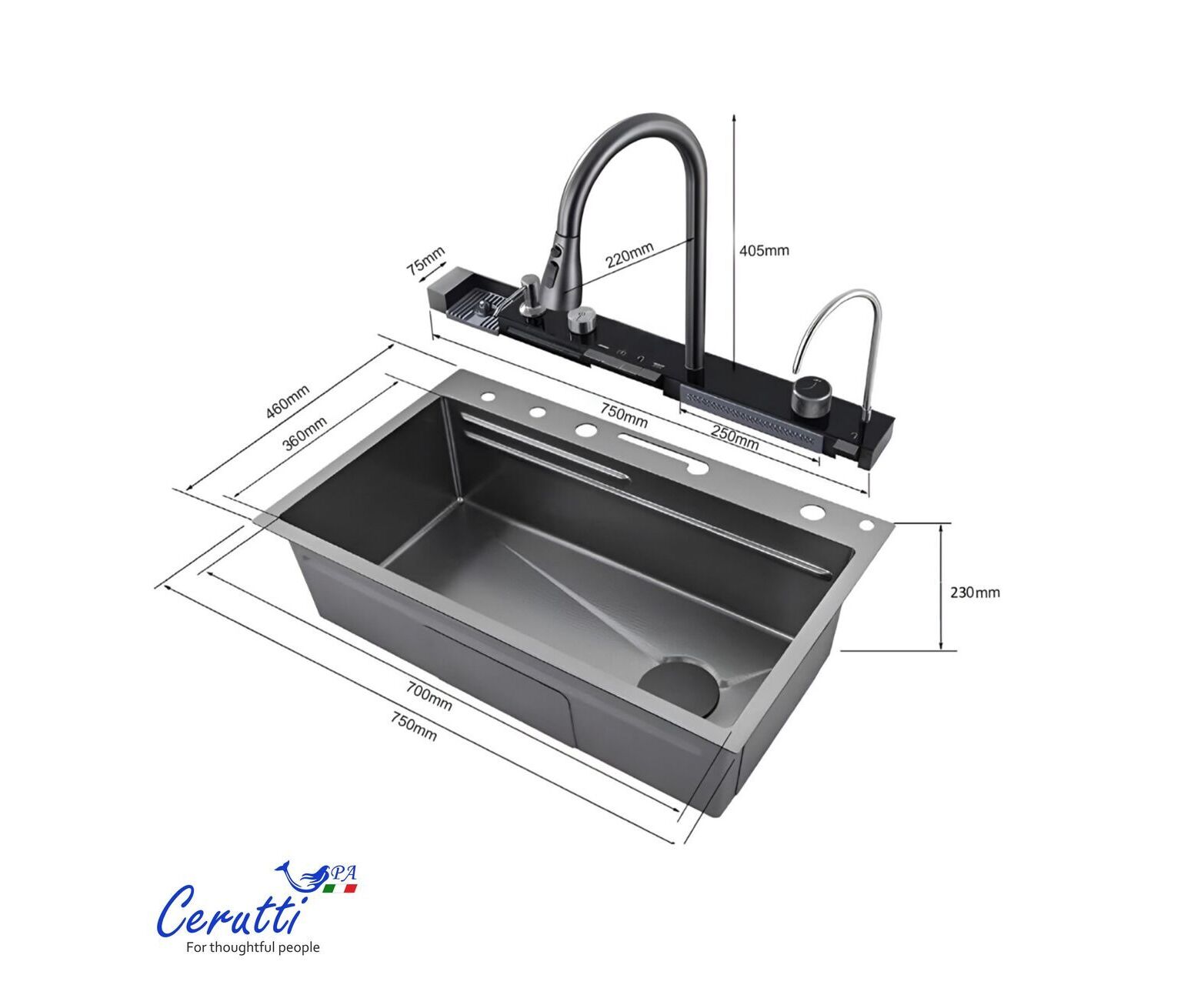 GLORIA Nano Embos от Ceruttispa! Это не просто мойка, это настоящий центр управления вашей кухней, воплощение итальянского стиля и инновационных технологий.