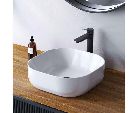Размер раковины составляет всего 43 см благодаря чему она может органично вписаться даже в ванную комнату с ограниченной площадью. Тщательно продуманная форма раковины исключает пролив воды за край сохраняя чистоту столешницы и сокращая время на уборку.